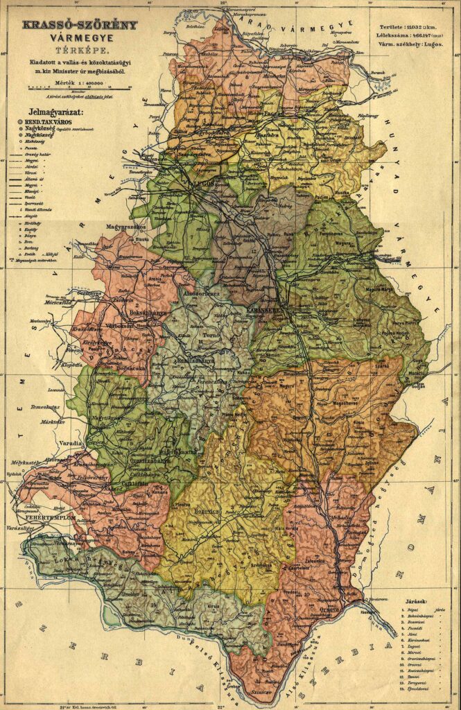 Karasch-Severin : Map of the Komitats Karasch Severin – 1913