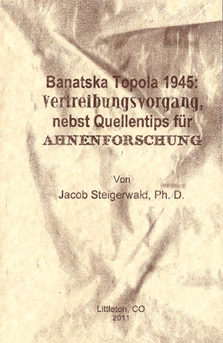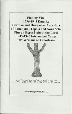 Finding Vital 1796-1945 Data Regarding German and Hungarian Ancestors of Banat(ska) Topola and Novo Selo, Plus an Exposé About the Local 1945-1946 Internment Camp for Germans of Yugoslavia;By Jacob Steigerwald, Ph. D. (Littleton, CO, 2009). ISBN 0-9615505-5-4.